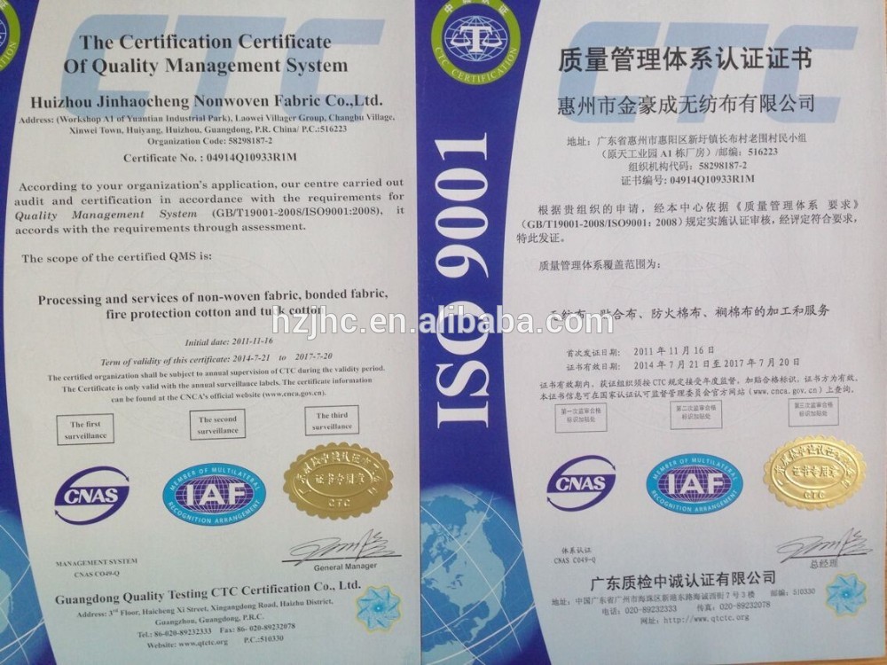 Huizhou Jinhaocheng Nonwoven Fabric Co., Ltd |