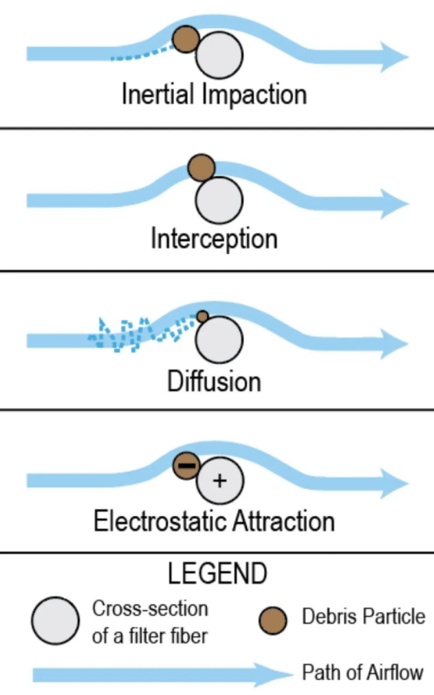 The filter material relies on textile or non-woven processes to achieve the density of the fibers in the space and form a certain network of pores, thus forming a "blocking" effect on the flowing air. The larger particles in the air are either "intercepted" by the collision with the fibers or by the fiber mesh blocking on the side of the filter material.For non-biological particles in the air (such as dust, PM2.5, etc.), the purification efficiency of masks mainly depends on the single interception ability of filter materials.