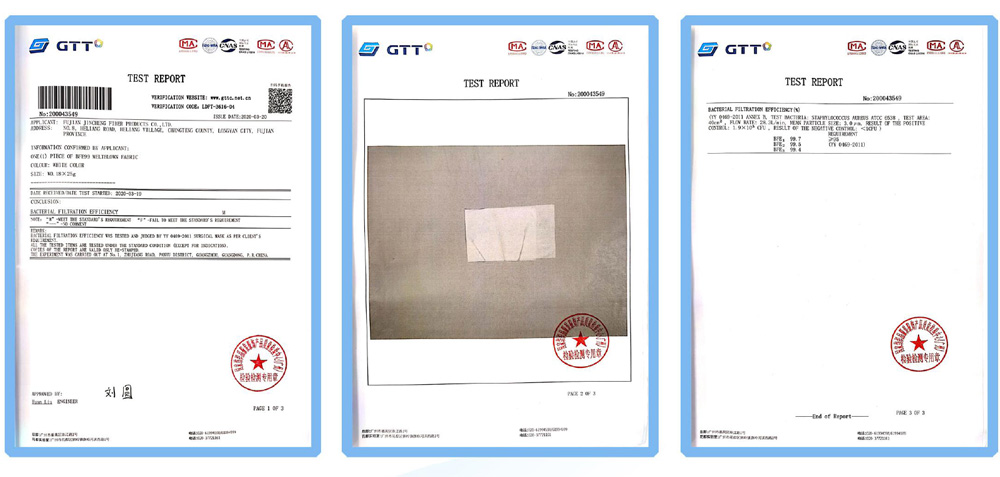 Meltblown fabric test reports